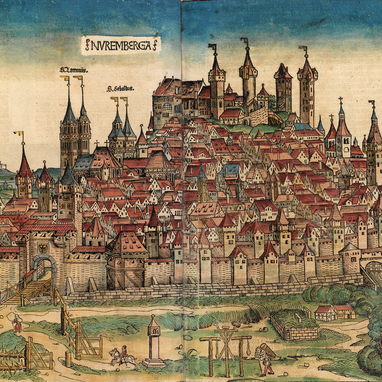 - Tento konkrétní dvoustránkový výjev je nejslavnější z 1809 ilustrací v knize a zobrazuje císařské město Norimberk.